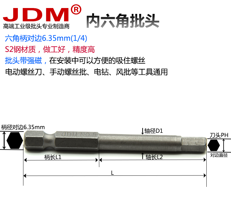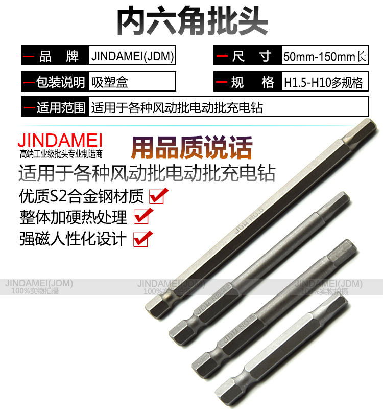 JDM/金达美 内六角螺丝刀批头气动电动内六角起子头改锥头风批头
