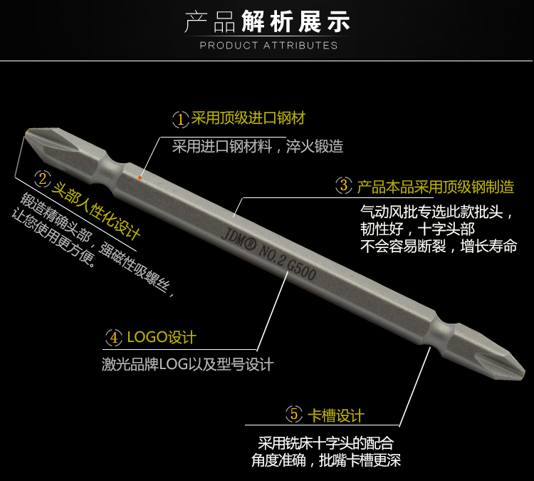 JDM 厂家风批头电钻螺丝刀批头强磁性双头十字改锥头气动起子头