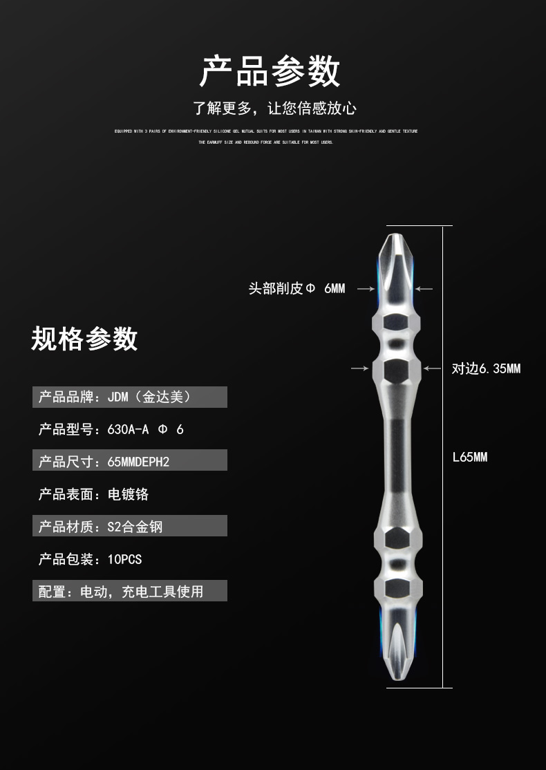 JDM/金太太电动螺丝刀头 头部带削皮5mm批头 强磁双头十字起子头