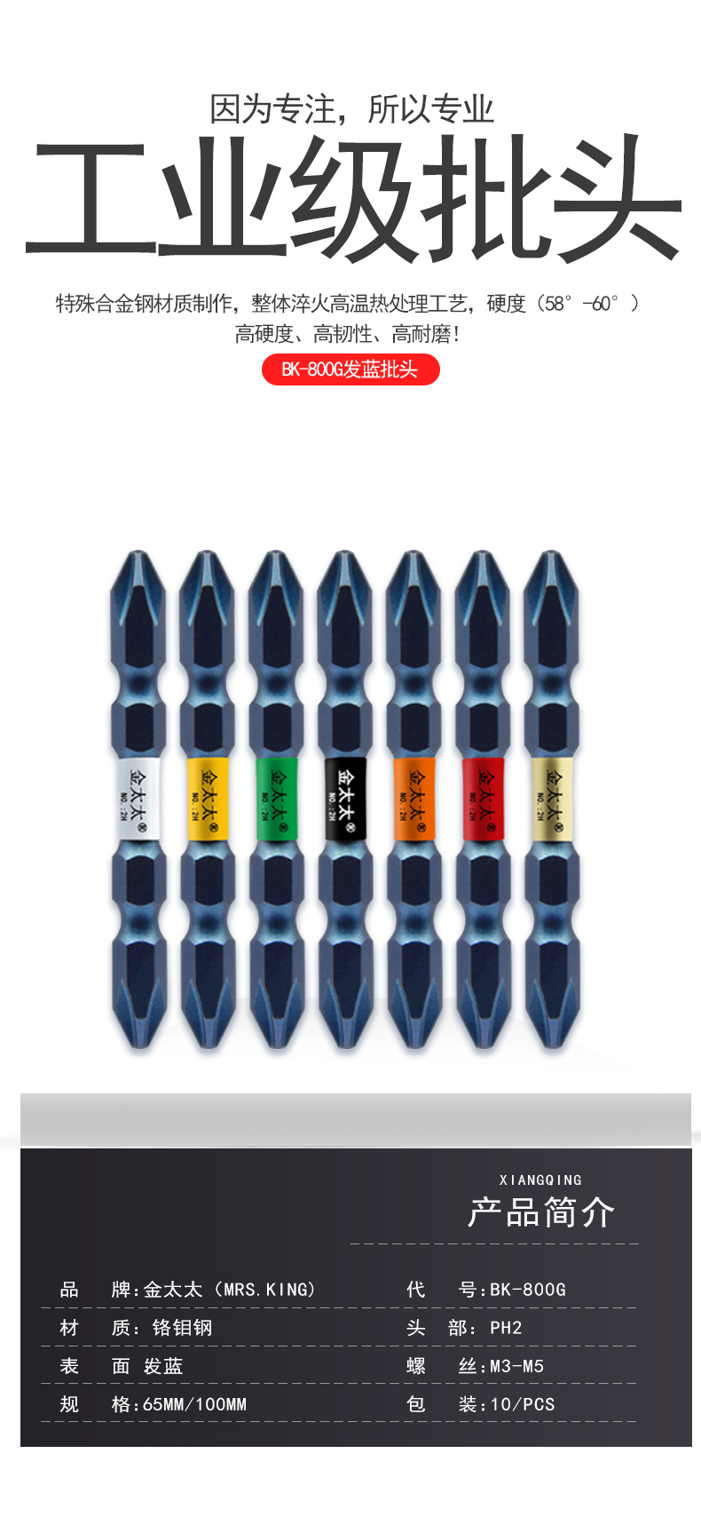 金太太/JDM 电动螺丝刀 十字PH2双头风批头强磁起子头手电钻刀头