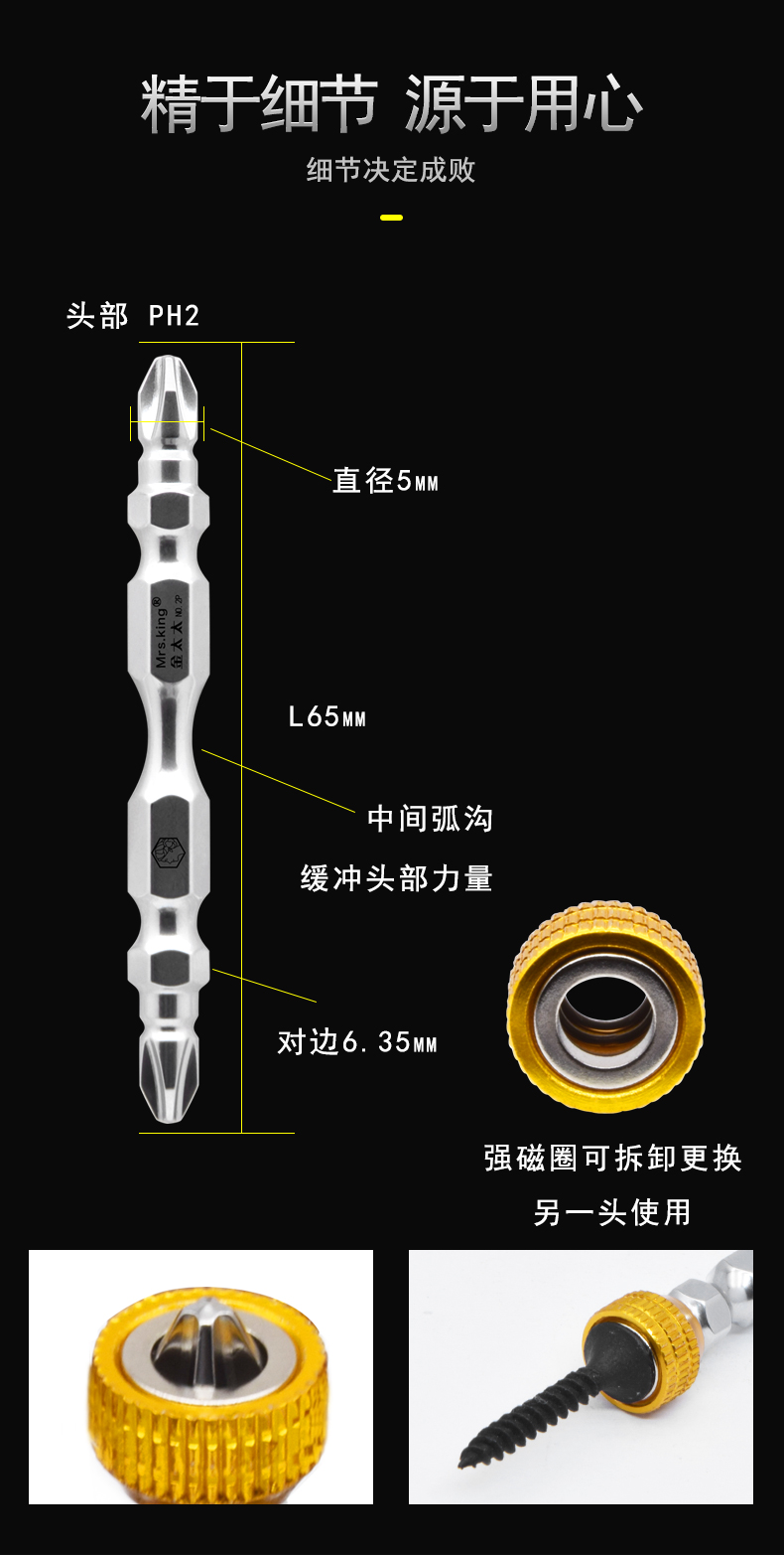 金太太/JDM 强磁圈批头防锈电动螺丝刀起子头电动气动风批头S2PH2