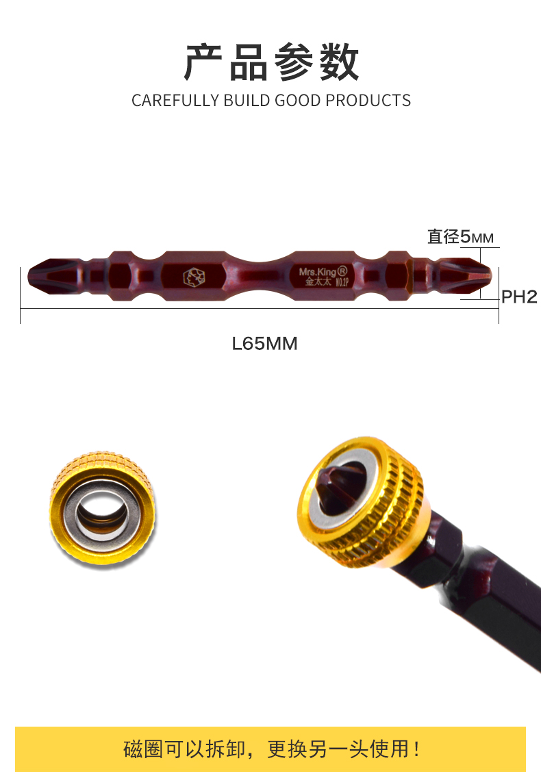 金太太/JDM强磁圈双头十字批头 发红S2PH2风批头电动螺丝刀起子头