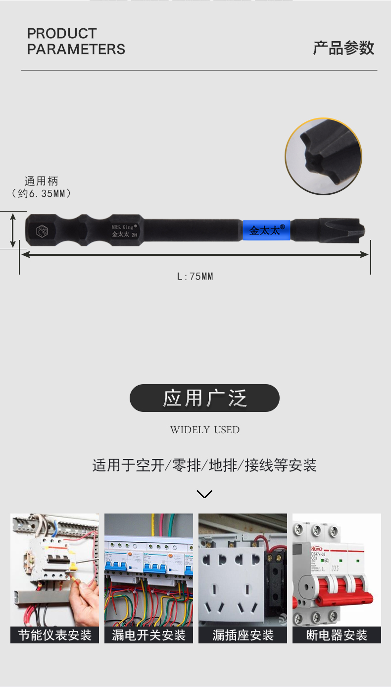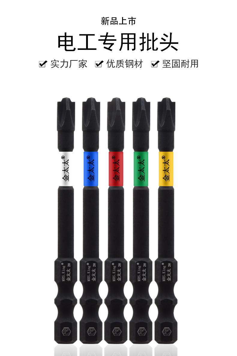 金太太 电工专用批头 十字一字二合一 面板空开电工批头 带磁性S2