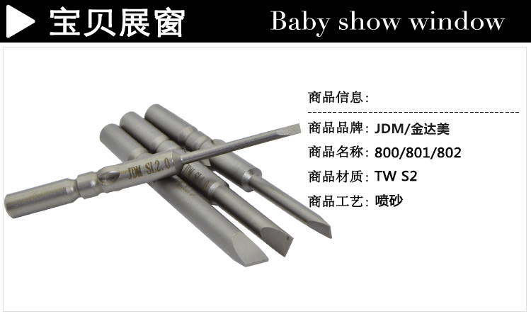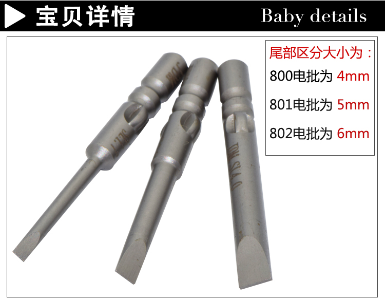 JDM/金达美 电动螺丝刀头800电批头磁性批咀螺丝批头一字 4mm电批头