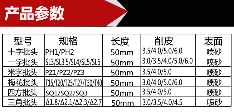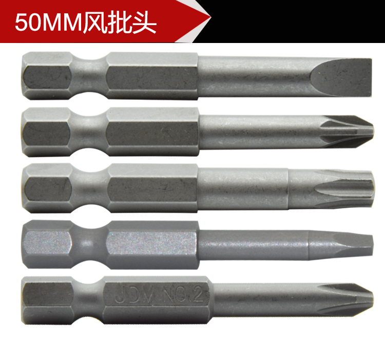 JDM金达美 风批头50mm螺丝刀头十字一字梅花内六角三角口四方批头