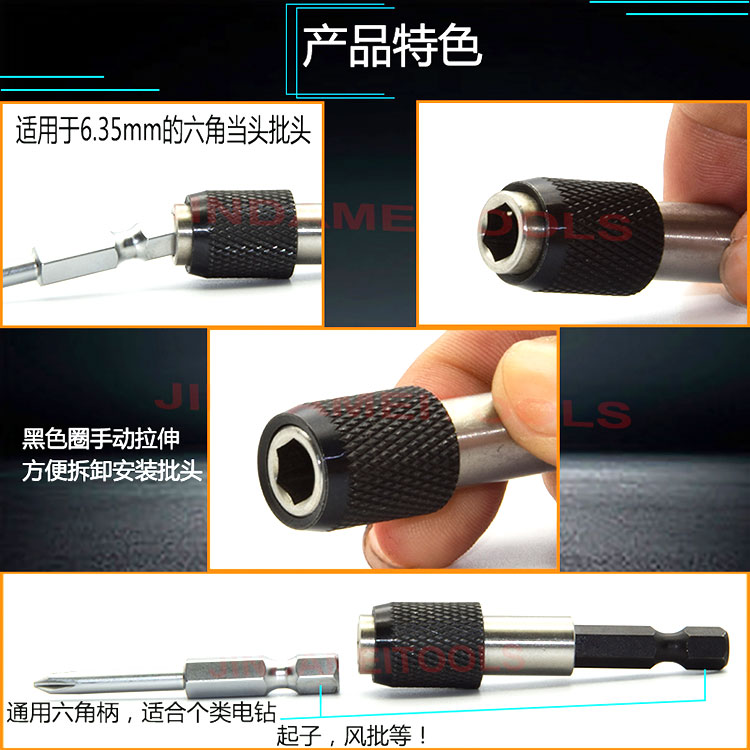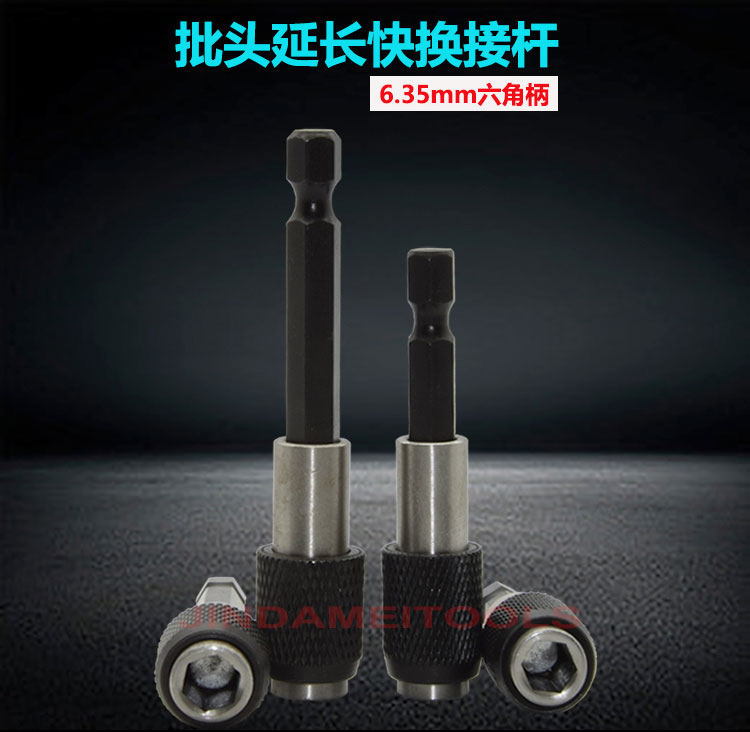 JDM 1/4六角柄接杆加长形快脱自锁转换夹头 手电钻起子接头强磁