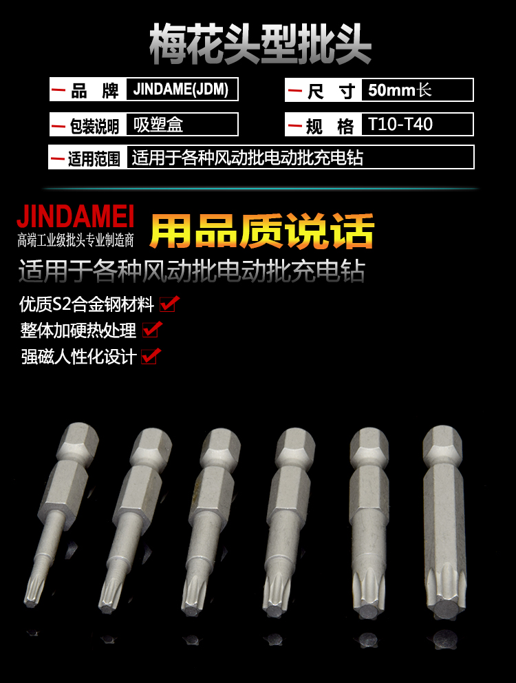 JDM 梅花螺丝刀 梅花风批头带强磁电动起子头改锥头批咀气动批头
